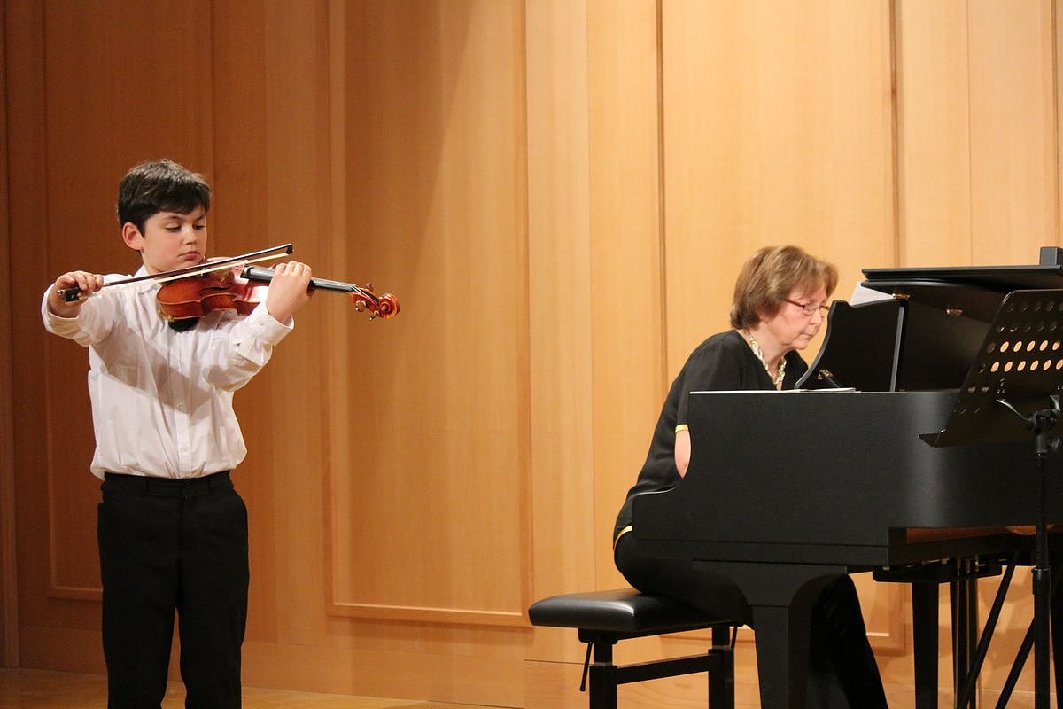 Leonard Toschev (10), einer der jüngsten Musiker kam aus Leinefelde, hier mit Prof. Bettina Born von der Hochschule für Musik FRANZ LISZT (Korrepetition) - Dimitri Shostakovitsch Romanze.