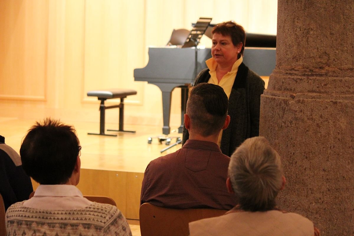 Die Leitung des Workshops, des Konzertes und der Ansage hatte Prof. Anne-Kathrin Lindig von der Hochschule für Musik FRANZ LISZT Weimar inne.