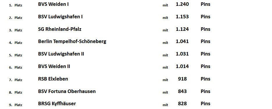 Zu diesem Wettstreit hatten sich neun Mannschaften aus fünf Bundesländern qualifiziert (Berlin, Thüringen, Bayern, Rheinland-Pfalz und Nordrhein- Westfalen).