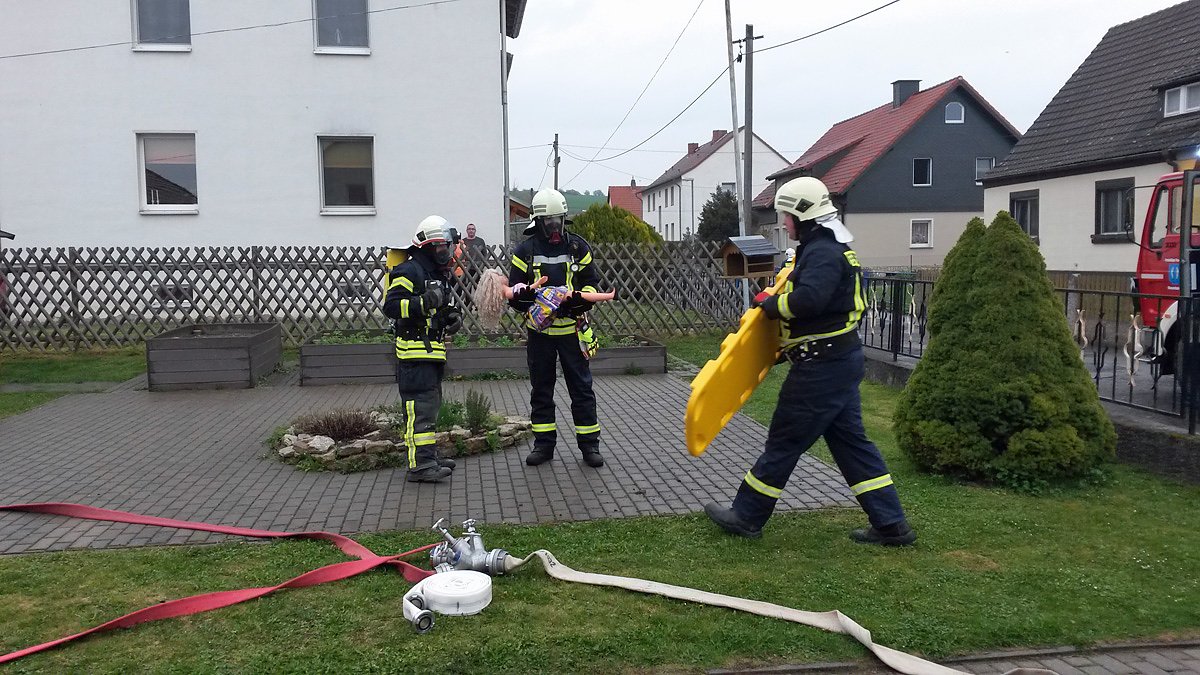 Autor: khhKurze Zeit später eilten die Kameraden der Feuerwehr Wasserthaleben auch schon herbei. Nach einer Lageerkundung wurden alle im Haupthaus des Kindergartens befindlichen Personen durch einen Kameraden in Sicherheit gebracht, denn auch dieses begann sich bereits mit Qualm zu füllen.
