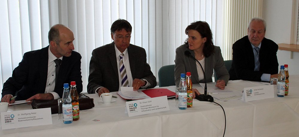 Dr. Wolfgang Peter (Vorsitzende des Bauernverband Kyffhäuserkreis e.V.), Dr. Klaus Sühl ( Staatssekretär des Thüringer Ministeriums für Infrastruktur und Landwirtschaft), Landrätin Antje Hochwind (SPD) und Manfred Pilch (Amtsleiter des Landwirtschaftsamtes Bad Frankenhausen / Sömmerda)