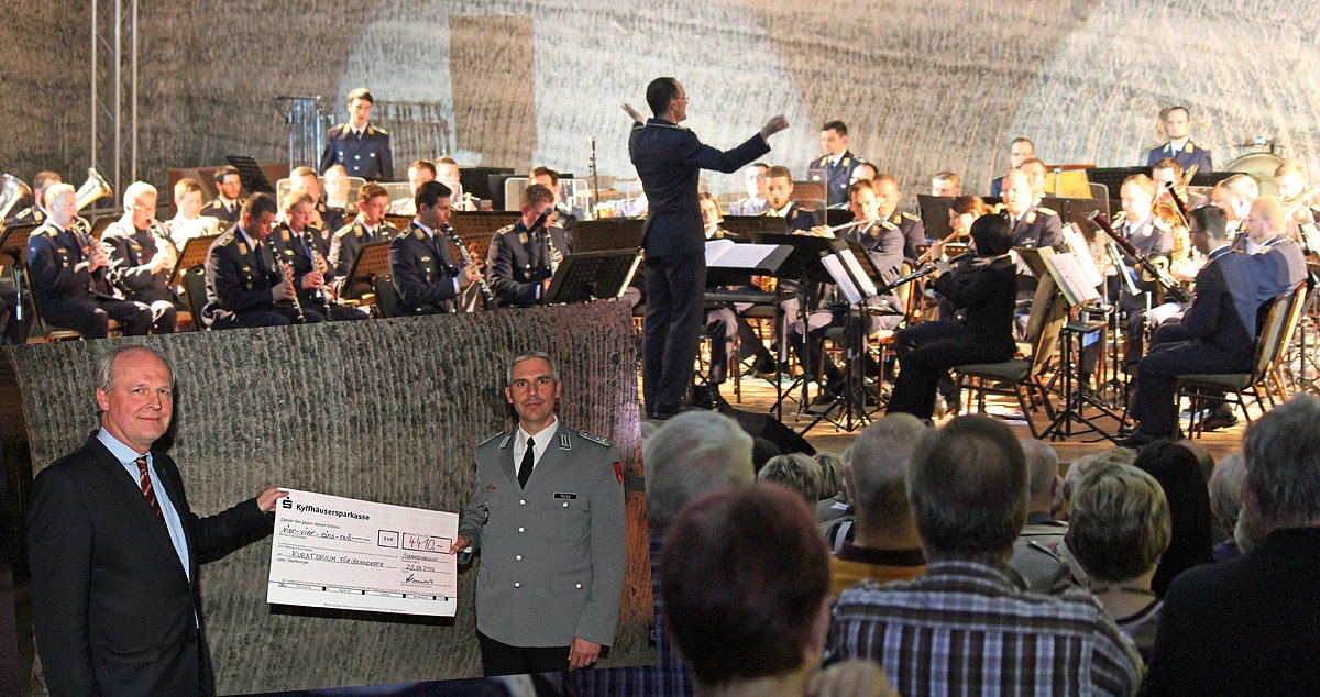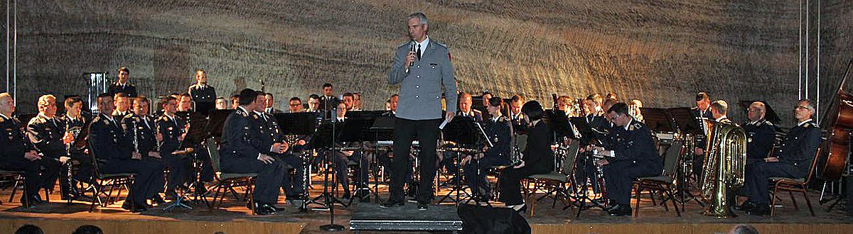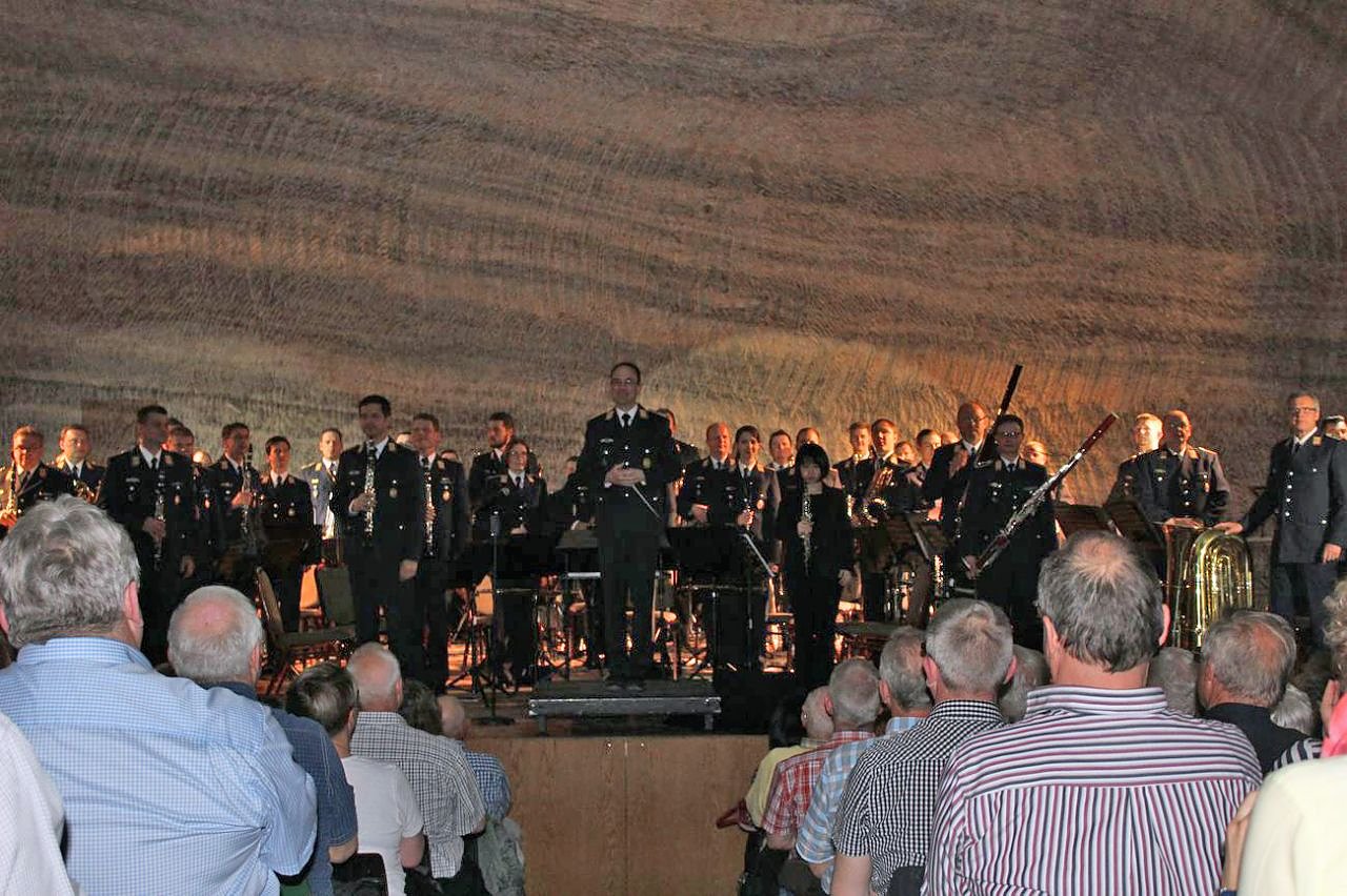 Stimmungsvoll begann das Konzert des Luftwaffenmusikkorps Erfurt unter Leitung von Oberstleutnant Burkard Zenglein mit dem Kürassier Marsch Großer Kurfürst. Für ihn war es das erste Konzert hier im Erlebnisbergwerk unter Tage, wie er dem Publikum erklärte, bei dem kn u.a. CDU Bundestagsmitglied Johannes Selle und den früheren Kommandeur Oberstleutnant Markus Kankeleit ausmachte.