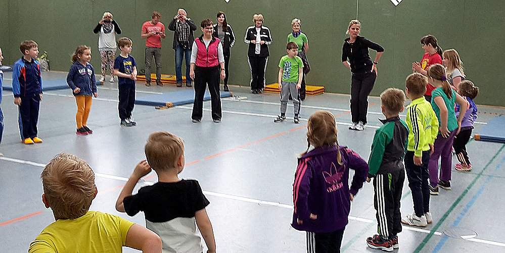ie gestrigen sechs Übungen lehnen sich auch an dieses Fitnessprogramm an. Auf die Übungen für Kinder von 4 bis 10 Jahren wurden die Kinder bereits im Vorfeld in ihren Einrichtungen von Erziehern und Lehrern vorbereitet. Zwar stand nicht nur der Spaß im Vordergrund, sondern auch die Leistung.