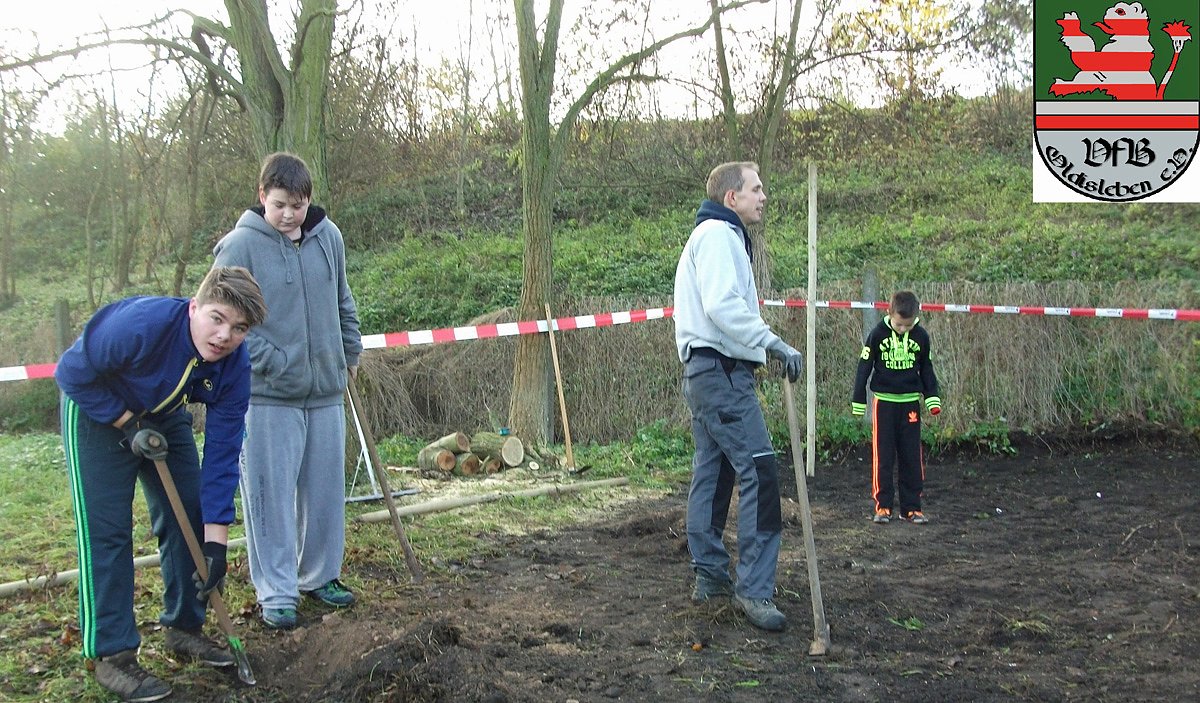 Es werden die Sturm- und Winterschäden auf dem Sportplatzgelände beseitigt und "die Perle" das Vereinsheim gesäubert.
