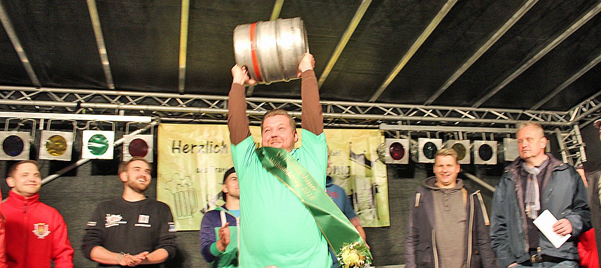 Und hier gab es den Jubelschrei des Siegers Matthias Reinecker aus Göllingen der sich gegen Steven Lange von den Frankenhisser Red Stars durchsetzen konnte, weil der das volle Bierglas länger halten konnte.