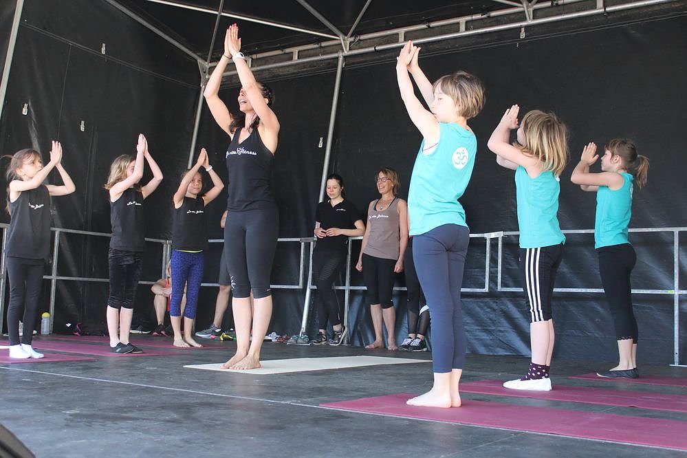 Aber auch ein umfangreiches Rahmenprogramm wurde geboten. Hier zeigte die Chefin vom Fitness-Center La vita, Karina Rasch, mit Kindern, wie Yoga für Kinder geht. Aber auch eine Menge anderer Fitnesstipps gab es bei diesem Programmpunkt.