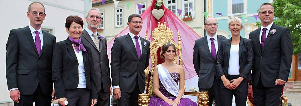 Die Krönung der ersten Fliederprinzessin Hannah-Katharina I. Wurde durch den Ehrenvorsitzende des Gewerbevereins, Rudolf Scherer, in einer sehr feierlich Form auf dem Markt von Bad Frankenhausen vollzogen. Und die Fliederprinzessin musste auch sofort die Amtsgeschäfte übernehmen, hier zusammen mit Mitgliedern des Gewerbevereins, die in diesem Jahr erstmals in geheimer Abstimmung die Fliederprinzessin ausgewählt hatten.