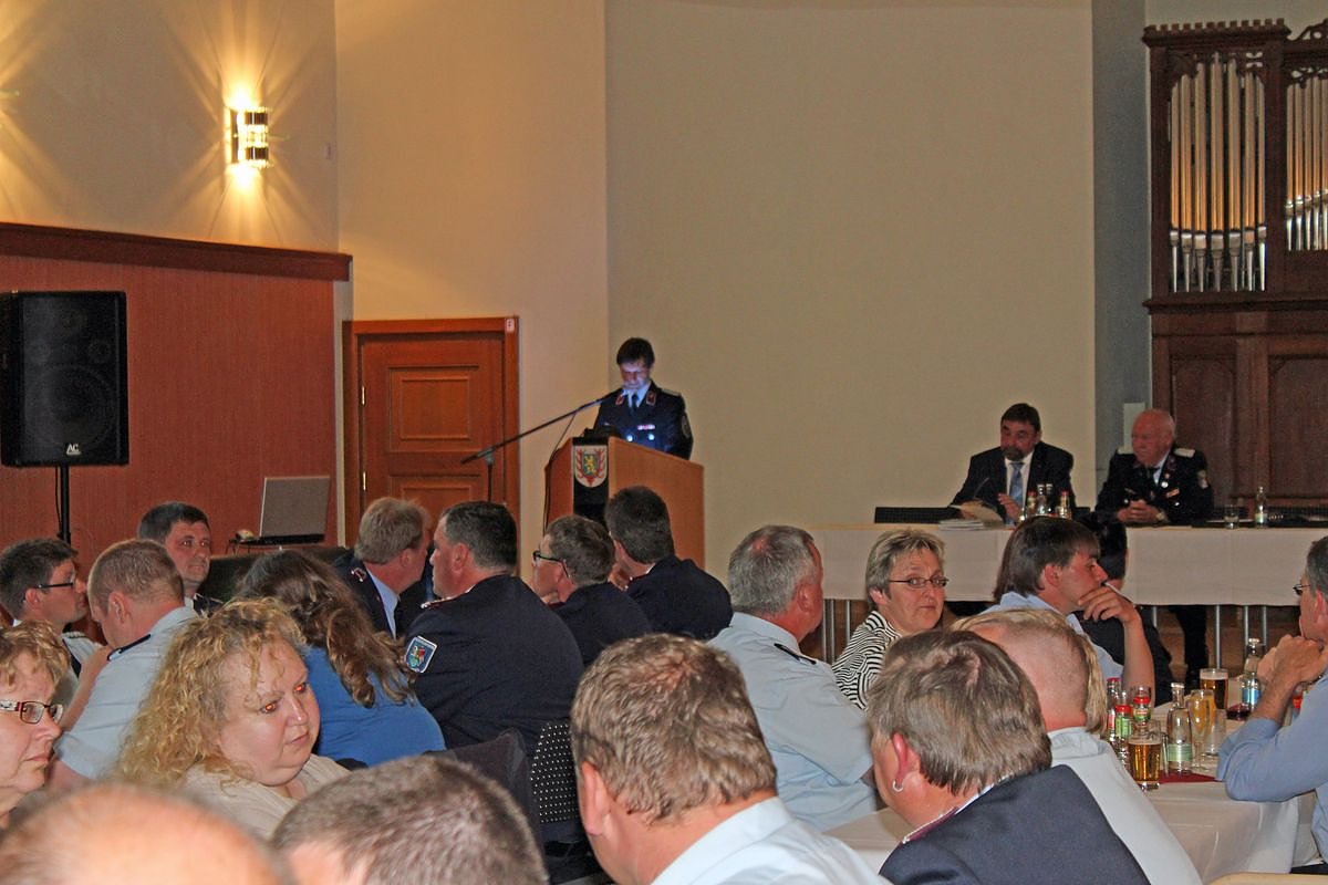 Nach Begrüßung durch den Vorsitzenden des Kreisfeuerwehrverbandes Mario Hasenbein warf der Geschäftsführer des Verbandes Günter Herting einen Blick zurück in die Geschichte des Löschwesens und wurde fündig, dass man in Sondershausen schon 1650 sehr intensiv mit dem Thema beschäftigte. Herting würdigte die Arbeit im Verband, stellte aber auch fest, es läuft nicht alles zur besten Zufriedenheit.