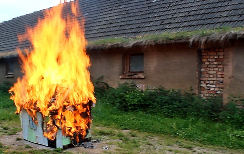 Die Kinder und Jugendlichen derJugendfeuerwehr hatten das Haus gebastel und schick bemalt und dann wurde es einfach zur Freude der Kinder abgefackelt.