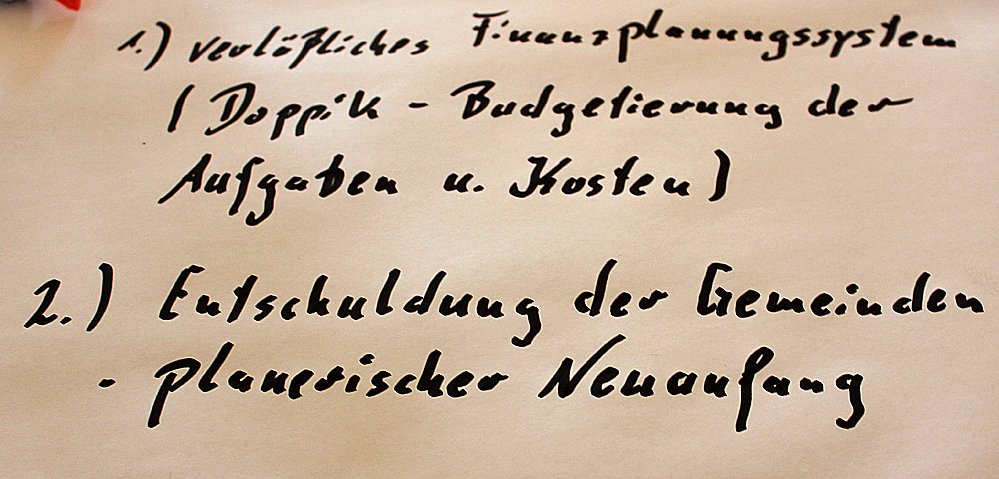 Er forderte Erneuerung des öffentlichen Finanzwesens nach bundesdeutschen Standards und die Entschuldung der Gemeinden.