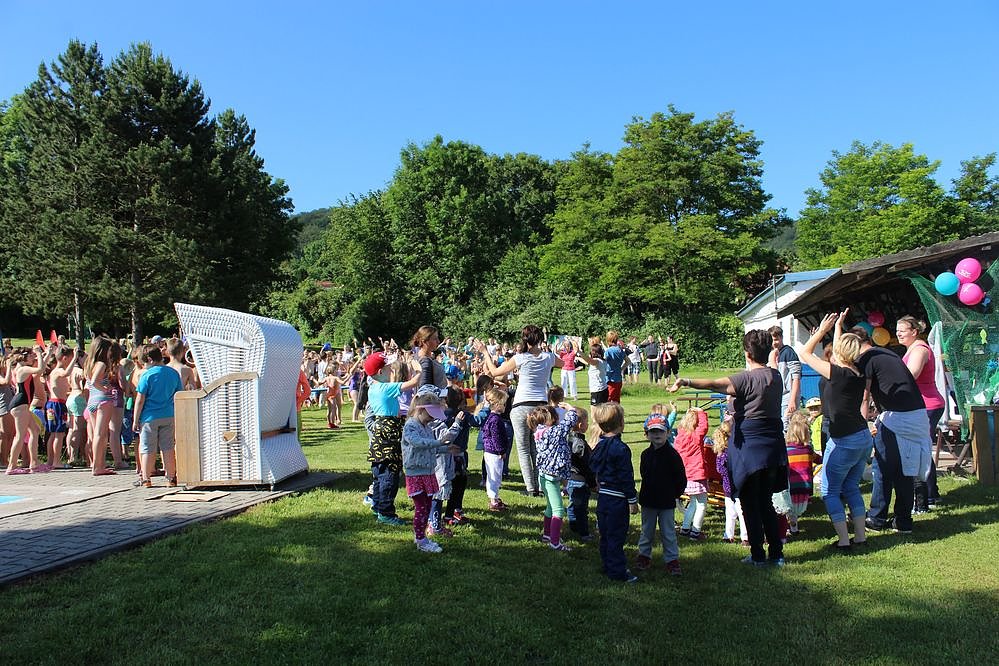 Auch Gäste gb es. Ein Gruppe Kinder hatte den Weg von der Kita "Arche Noah 2" in Großfurra bis zum Schwimmbad zu laufen, um zu sehen, was die größeren Kinder so treiben.