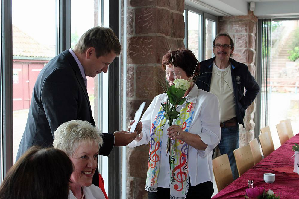 Bad Frankenhausens Bürgermeister Matthias Strejc hatte ein Stück weiter am Imbiss eine Überraschung parat. Für die Frauen gab es eine Blume und für die Chefin vom Chor eine Spende zu Gunsten des Chors. Noch einem kleinen Imbiss ging es zurück nach Bad Frankenhausen.