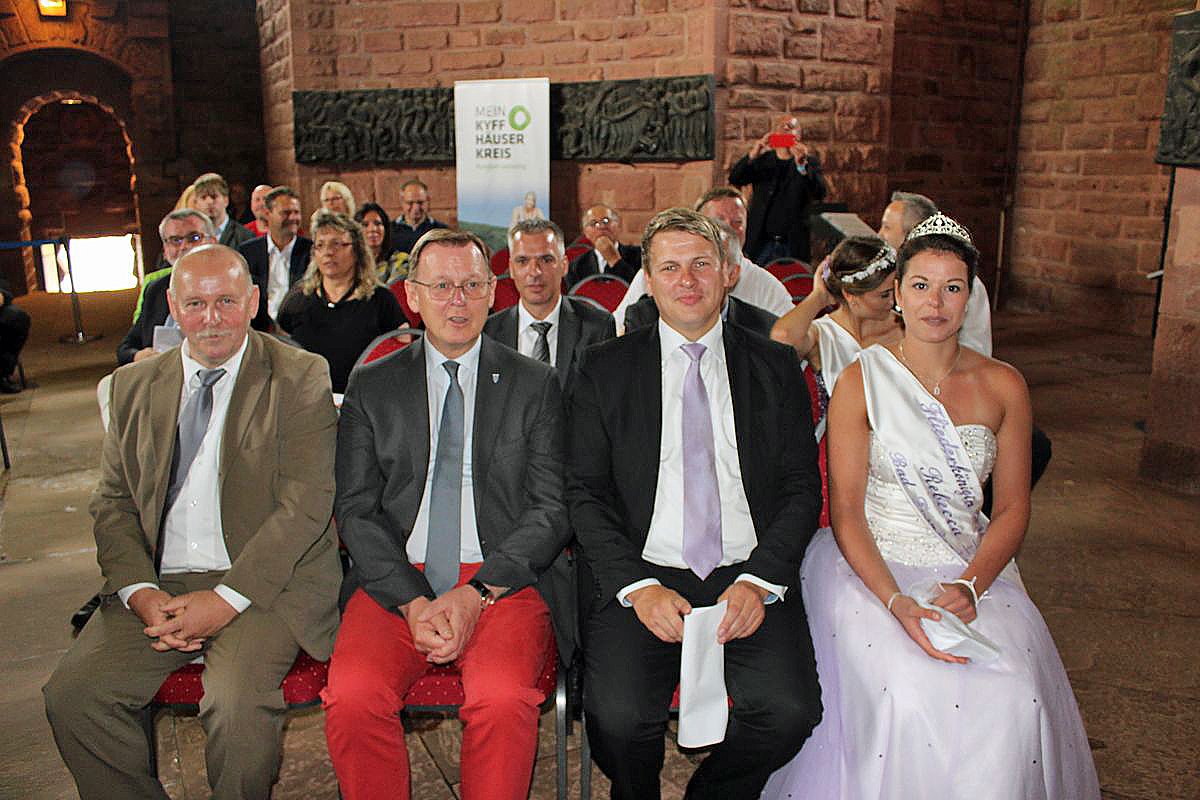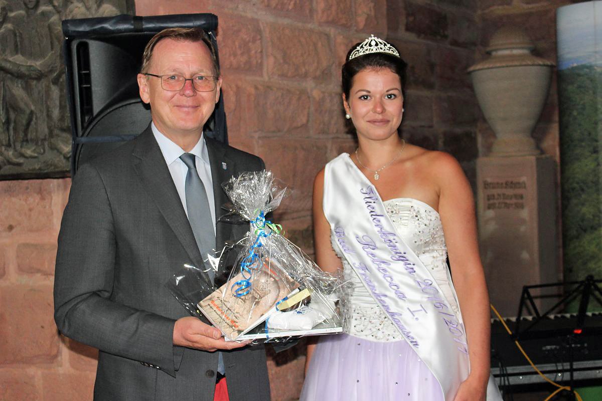 Aber unter den Gästen war noch weit mehr Prominenz, so die Bundestagsabgeordneten Kersten Steinke (Die Linke) und Manfred Grund (CDU) aus dem Eichsfeldkreis, so wie die Landtagsmitglieder Gudrun Holbe (CDU) Dorothea Marx (SPD) und Manfred Scherer (CDU). Weitere Gäste Hannah-Katharina I. die neue Fliederprinzessin und ein Geschenk brachte Heinz Ganz, Präsident des Kyffhäuserbundes e.V. vorbei, sowie Bärbel Grönegres Geschäftsführerin Thüringer Tourismus GmbH und Stefan Nüßle Beigeordneter aus dem Landkreis Nordhausen.