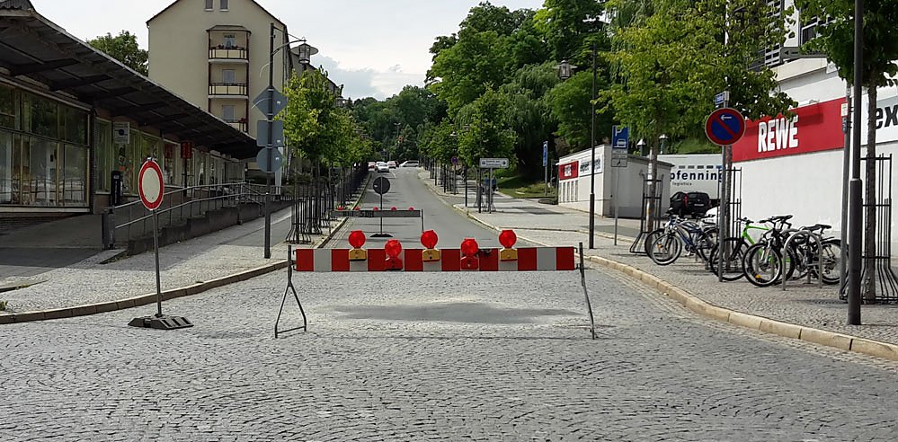 Grund war diese Baustelle in der Lohstraße. Hier war lockeres Pflaster ausgebessert worden.