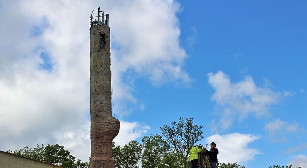 Heute begannen für rund 100 Kinder aus sozial benachteiligten Thüringer Familie die Ferien auf der Feuerkuppe. Beliebt natürlich der tolle Kletterturm. Aber auch das eigene kleine Schwimmbad lockt, und die Zeichen stehen nicht schlecht, denn es soll in dieser Woche wieder so richtig warm werden. Aber nicht nur Sport soll getrieben werden. Vielfältige Aktivitäten werden den Kindern geboten, bis hin zum gemeinsamen Backen.