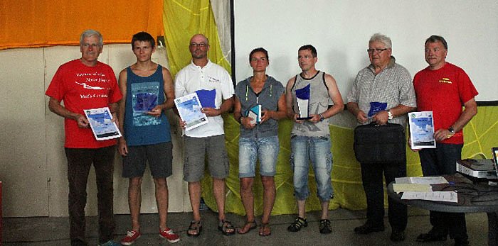 Erster Kreisbeigeordneter Raimund Scheja, Daniel Hirt und Gabi Hampe vom Landesluftsportverband Thüringen, Wettbewerbsleiter Hors Dreischärf und Sportleiter Frank Krämer nahmen die Siegerehrung vor und überreichten die begehrten Pokale und Preise.