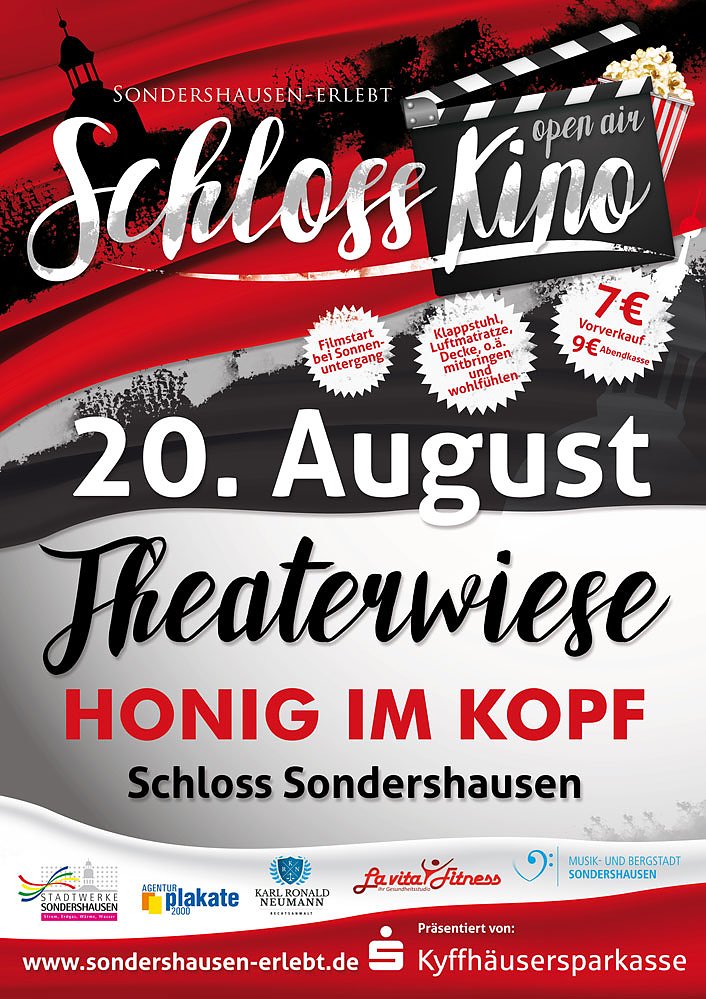 Autor: khhHonig im Kopf heißt der Film, der beim Voting die meisten Stimmen erhielt und es somit zum Hauptfilm geschafft hat. Die Theaterwiese bietet dabei ein außergewöhnliches Ambiente mit Blick auf die Schlosskulisse. Auch Sie sind herzlich dazu eingeladen, dieses einzigartige Erlebnis im vertrauten Kreise von Freunden mitzuerleben.