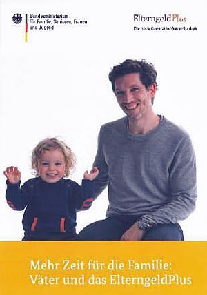 Vor diesem Hintergrund veröffentlichte das Bundesministerium für Familie, Senioren, Frauen und Jugend (BMFSFJ) die neue Broschüre Mehr Zeit für die Familie: Väter und das ElterngeldPlus, die speziell die Situation von Vätern in Familie und Erwerbsleben aufgreift und auf die Möglichkeiten des ElterngeldPlus hinweist. Sie gibt Hilfe und Verweise für die Berechnung des Anspruchs, die notwendigen Unterlagen und Beratungsstellen.