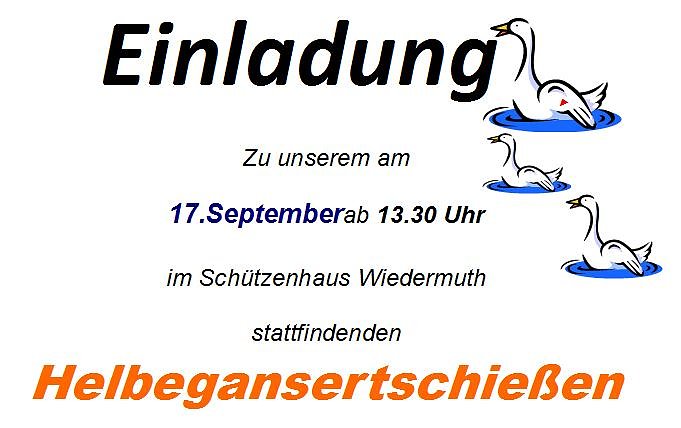 Helbegansertschießen möchten wir herzlich einladen, in gemütlicher Runde um einen leckeren Sonntagsbraten, viele Ringe zu erkämpfen, so der SV Wiedermuth in seiner Meldung.