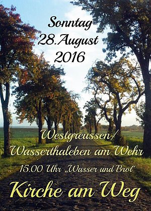 Mit dem Thema Wasser und Brot beginnt der Kirche am Weg - Gottesdienst am großen Helbewehr vor Wasserthaleben am Sonntag, den 28.August. Der Familienchor, die PfarrerInnen Fauß, Theilemann und Süpke, Kreiskantor Andreas Fauß und das Vorbereitungsteam aus Wasserthaleben und Westgreußen erwarten dort alle Interessierten von Klein bis Groß um 15.00 Uhr. Während des alternativen und kreativen Gottesdienstes gehen wir gemeinsam an die Kirche nach Westgreußen.
