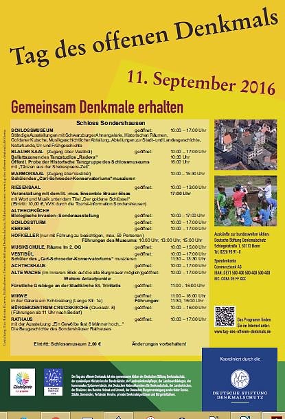 Nähere Informationen sind den Ankündigungen vor Ort zu entnehmen. Tag des Offenen Denkmals 2016-Sondershausen