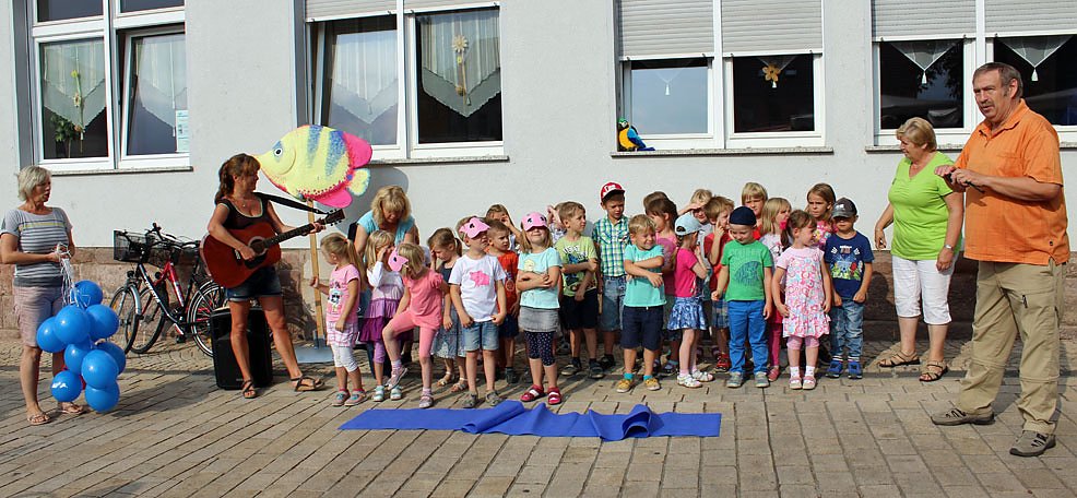 Und so war natürlich auch das Lied von der kleinen weißen Friedenstaube dabei. Nur das Mitsingen der Erwachsenen klappte nicht so richtig.
