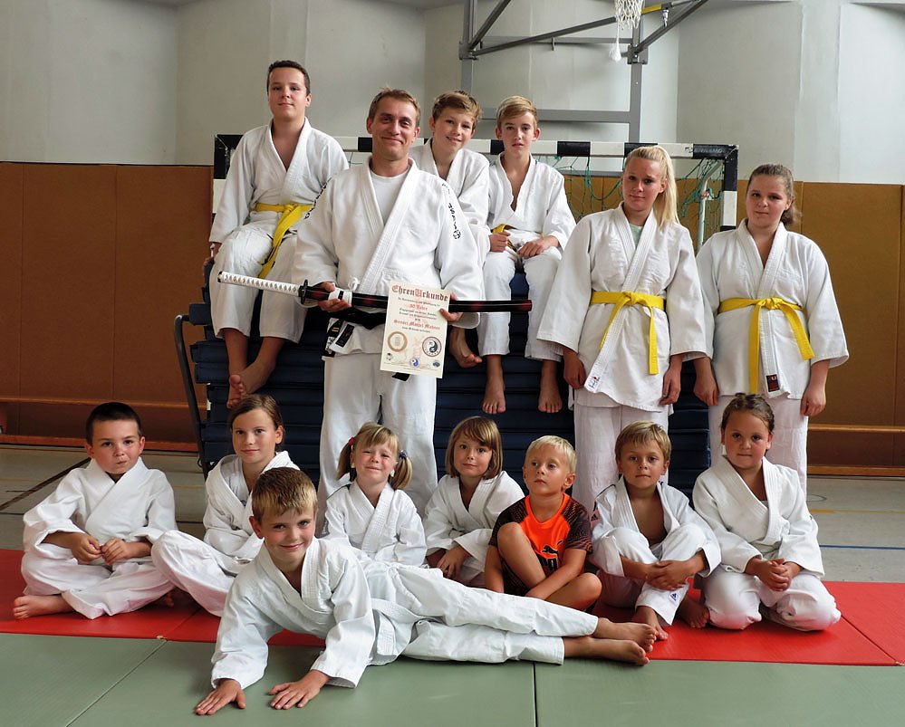 Der 1980 geborene Judotrainer und Sektionsleiter des CDK Yasuhiro Yamashita Bad Frankenhausen e.V. Marcel Mahner konnte fast auf den Tag genau am letzten Freitag sein 30jähriges Judojubiläum feiern- wenn er es gewusst hätte. Mann, damit habe ich überhaupt nicht gerechnet- was denn, wirklich schon 30 Jahre! waren seine ersten Worte, als er von seiner Trainingsgruppe, einigen Eltern und natürlich dem Vorstand des Vereins mit einer Ehrenurkunde und einem handgeschiedeten japanischen Samuraischwert überrascht wurde.