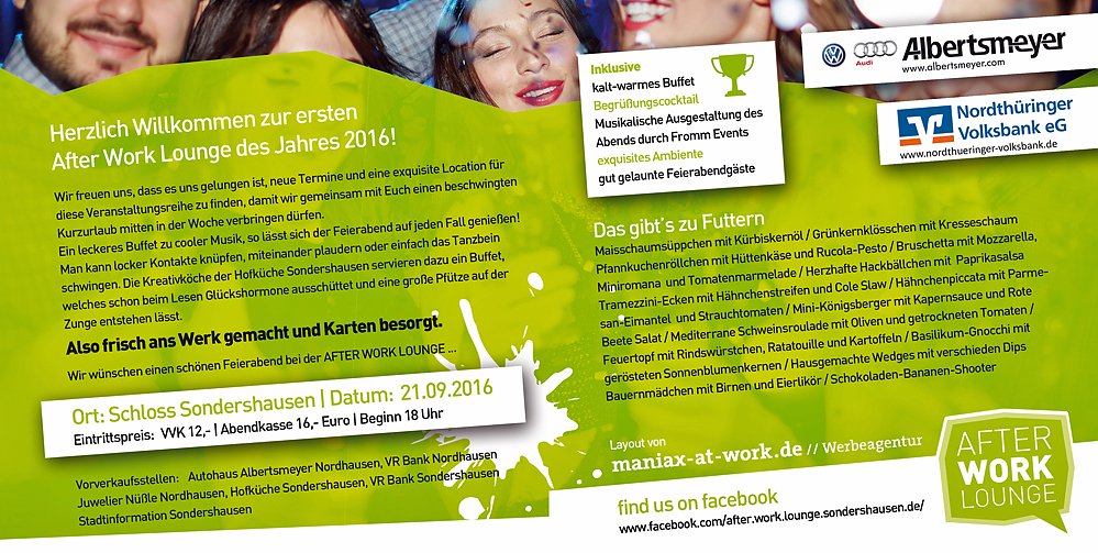 Wir wünschen einen schönen Feierabend bei der AFTER WORK LOUNGE am 21.09.2016 im Sondershausen Schloss…