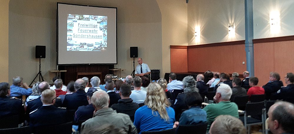 Bürgermeister Kreyer (CDU) und Bauamtsleiter betonten die Wichtigkeit der FFW für die Stadt Sondershausen und ihrem Wirken. Bei Einsätzen verletzten sich insgesamt 24 Kameraden. Kucksch informierte, dass es in Thüringen im letzten Jahr 30.000 Einsätze gab und in der Stadt Sondershausen stieg im letzten Jahr die Zahl der Einsätze um 18 Prozent.