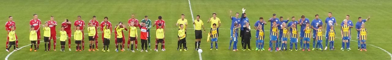 1. Minute: Das Spiel beginnt. Wacker stößt an.