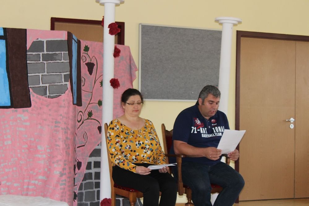 Elena Jakob und Carlos Ziedan lasen heute das Märchen vom Dornröschen vor, aber mit einer Besonderheit. Carlos las das Märchen auf arabisch vor und Elena auf russisch. Das Märchen vom Dornröschen heißt im arabischen übrigens Die schlafende Prinzessin.