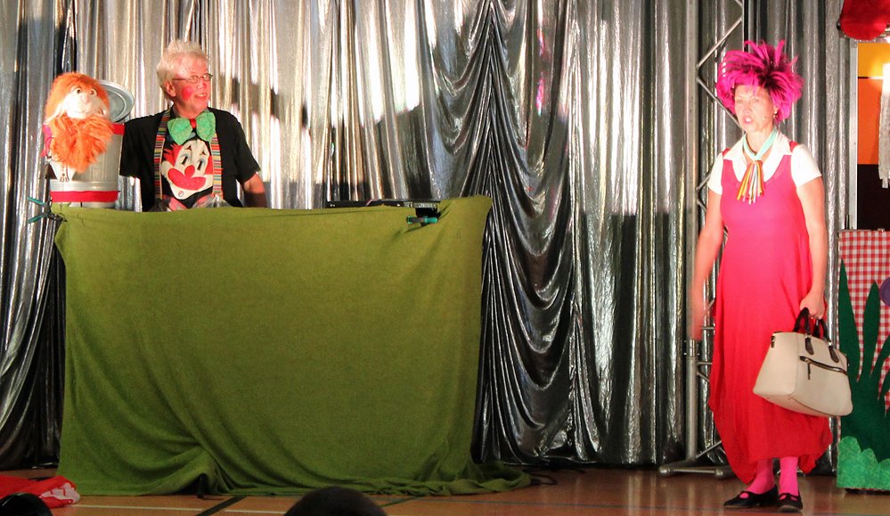 In einer spielerischen Weise bekamen die Kinder etwas über Geld und den Umgang mit Geld vermittelt. So stellten Eurosita (die Sparmaus die bei der Sparkasse arbeitet) und Kater Centrino zusammen mit dem Clown Hajo die Geldscheine vor, unterstützt von Lucie Luft.