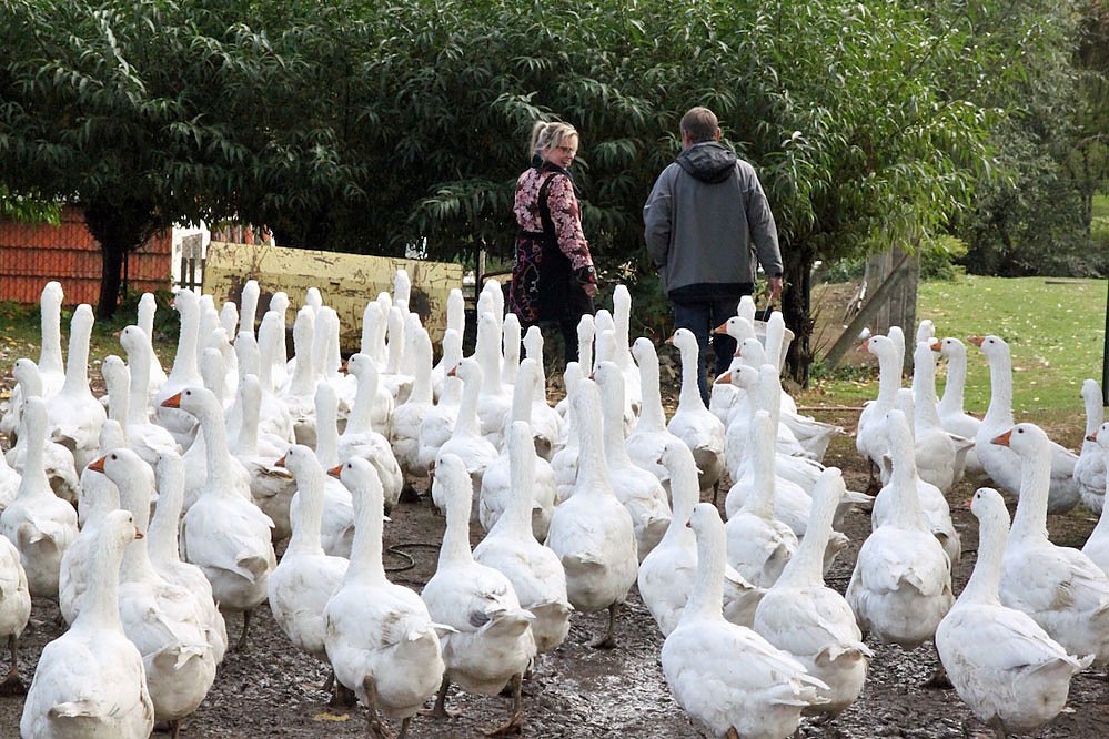 Etwa 150 Gänse werden jährlich im Haus Jona aufgezogen. Um einen unvergleichlich leckeren Gänsebraten am Martinstag oder zum Weihnachtsfest genießen zu können, müssen Kundinnen und Kunden schnell sein: Bereits im September ist die Liste mit den Vorbestellungen voll – und das jedes Jahr auf´s Neue! Die Tiere leben auf dem Hof Haus Jona artgerecht und das macht das Fleisch um so leckerer. Foto: S. Spehr.