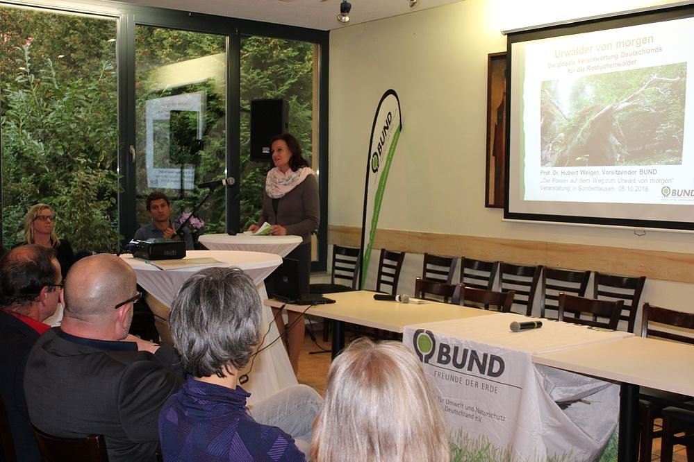 Manuel Schweiger von der zoologischen Gesellschaft führte aus, es gibt immer mehr Wunsch der Bürger nach mehr Wildnis. Eine Bürgerin in der Diskussion: Ich will Wald sehen und keinen Garten mit Bäumen.