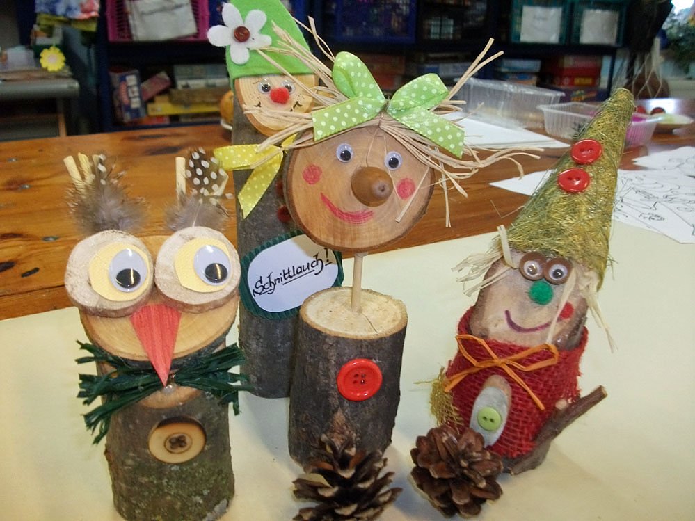 Schon am Montag ging es zur Vorbesprechung mit einer Gruppe Jugendlicher ins Waldatelier nach Garnbach. Dort konnten sie sich selber an Holzsägearbeiten ausprobieren, wobei schöne Sterne, Kerzenständer, Schalen und Windspiele entstanden.