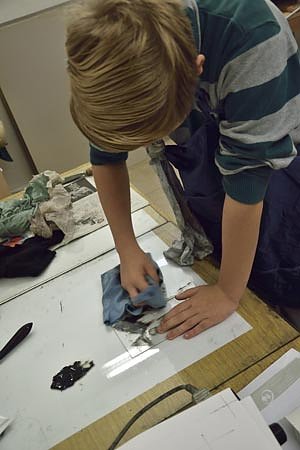 Am Ende wurde die Zeit sogar knapp und sie mussten sich beim Drucken ihrer Radierungen sehr beeilen. Natürlich ist dieser Moment, wenn man die Platte mit Farbe eingerieben und dann die Farbe wieder von den unbearbeiteten Flächen mehr oder weniger gekonnt entfernt und sie dann bedeckt mit einem weichen Büttenpapier durch die Radierpresse gezogen hat, überaus spannend, denn erst jetzt kann man das Resultat seiner Bemühungen richtig würdigen. Für jemanden, der erstmals auf diese Art und Weise Bilder macht, ist das Ganze sicher sehr faszinierend.