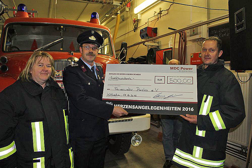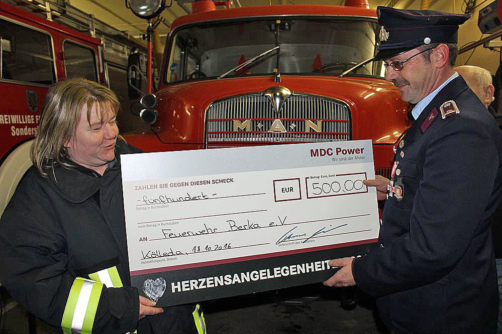 Mitarbeiter von MDC Power arbeiteten zwei Schichten lang für einen guten Zweck und haben ihre Arbeitszeit gespendet. MDC Power verdoppelte die erwirtschaftete Spendensumme. Insgesamt kam eine Spendenhöhe von insgesamt 200.000 Euro zusammen. Die Spendenvorschläge wurden von Mitarbeitern eingereicht. Auch Christian Gresko von der Freiwilligen Feuerwehr Berka hatte eine Sonderschicht gefahren. Insgesamt waren es über 350 Vorschläge!