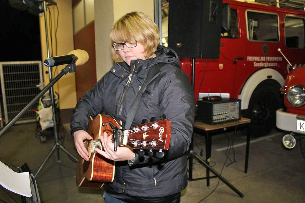 Natürlich gab es auch Live-Musik. Und der Umzug war auch bald Geschichte, denn viele zog es doch wieder ins Warme in der Vereinsraum der Feuerwehr, in dem Punsch mit und ohne Alkohol zum Aufwärmen wartete. Zwar freute man sich riesig, dass es nicht regnete, aber es war schon empfindlich kühl mit 0°C, wie kn kurz danach zu Hause am Thermometer feststellte.