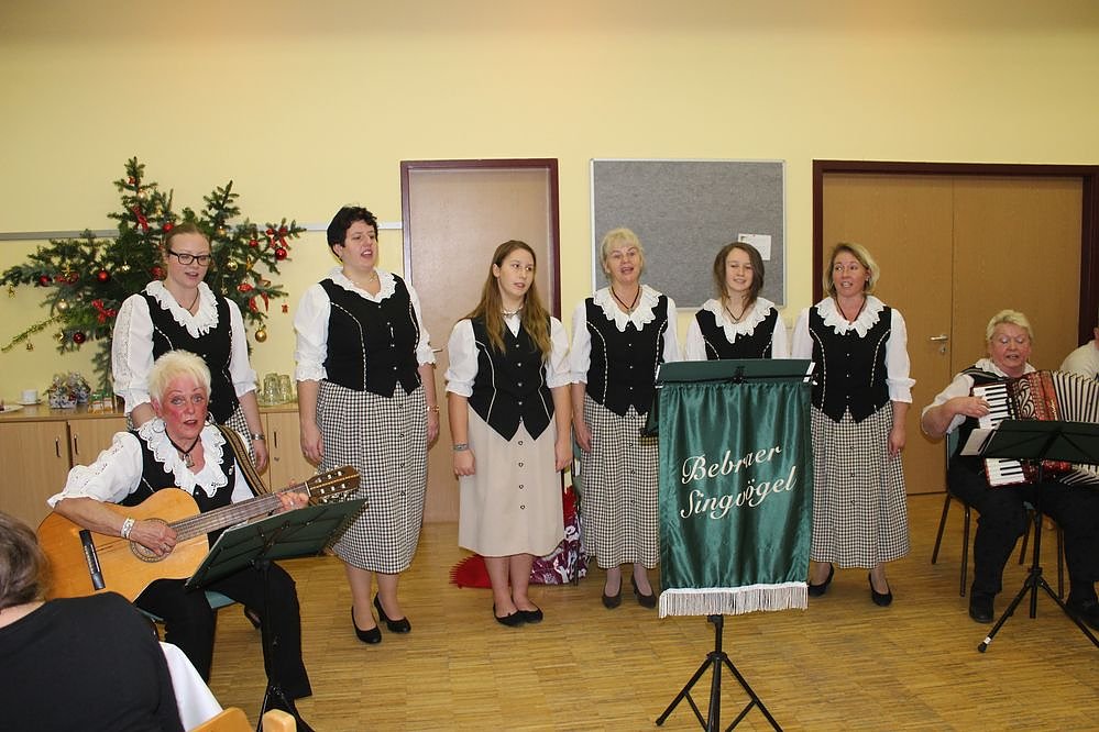 Vorher gab es jedoch so richtig etwas auf die Ohren und die Seele. Die Bebraer Singvögel erfreuten mit vielen Weihnachtsliedern und Sketchen, die meist Helga Marx (ganz links) geschrieben oder inszeniert hat. Viel Beifall gab es für die Weihnachtsmaus die wohl nicht nur dort ihr Unwesen trieb. Auch Weihnachtswichtel waren da.