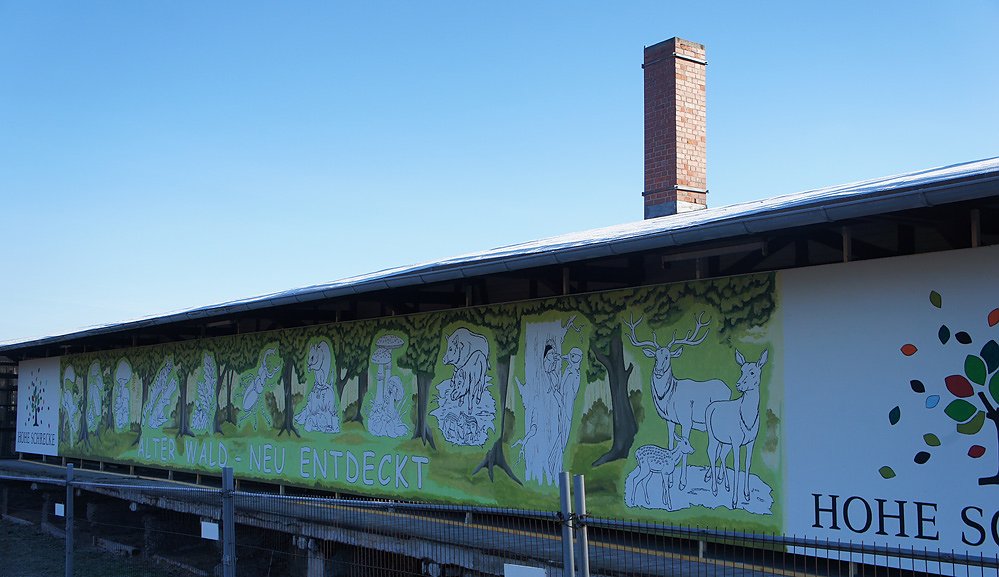 Am sonnigen Morgen des 3. Dezember fanden sich Mitglieder des Vereins Hohe Schrecke – Alter Wald mit Zukunft e.V. auf dem Bahnsteig in Heldrungen ein. Sie waren gekommen, um das in den vorangegangenen vier Wochen entstandene Wandbild Hohe Schrecke einzuweihen.