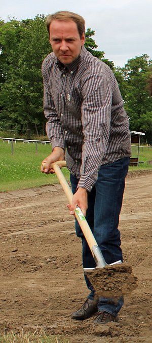 Leser von kn werden den Namen von Thomas Röber öfter gelesen haben. Umso schwieriger war es im Archiv ein Foto zu finden, denn er organisiert mehr. Hier ist er allerdings beim ersten Spatenstich für den neuen Sportplatz.