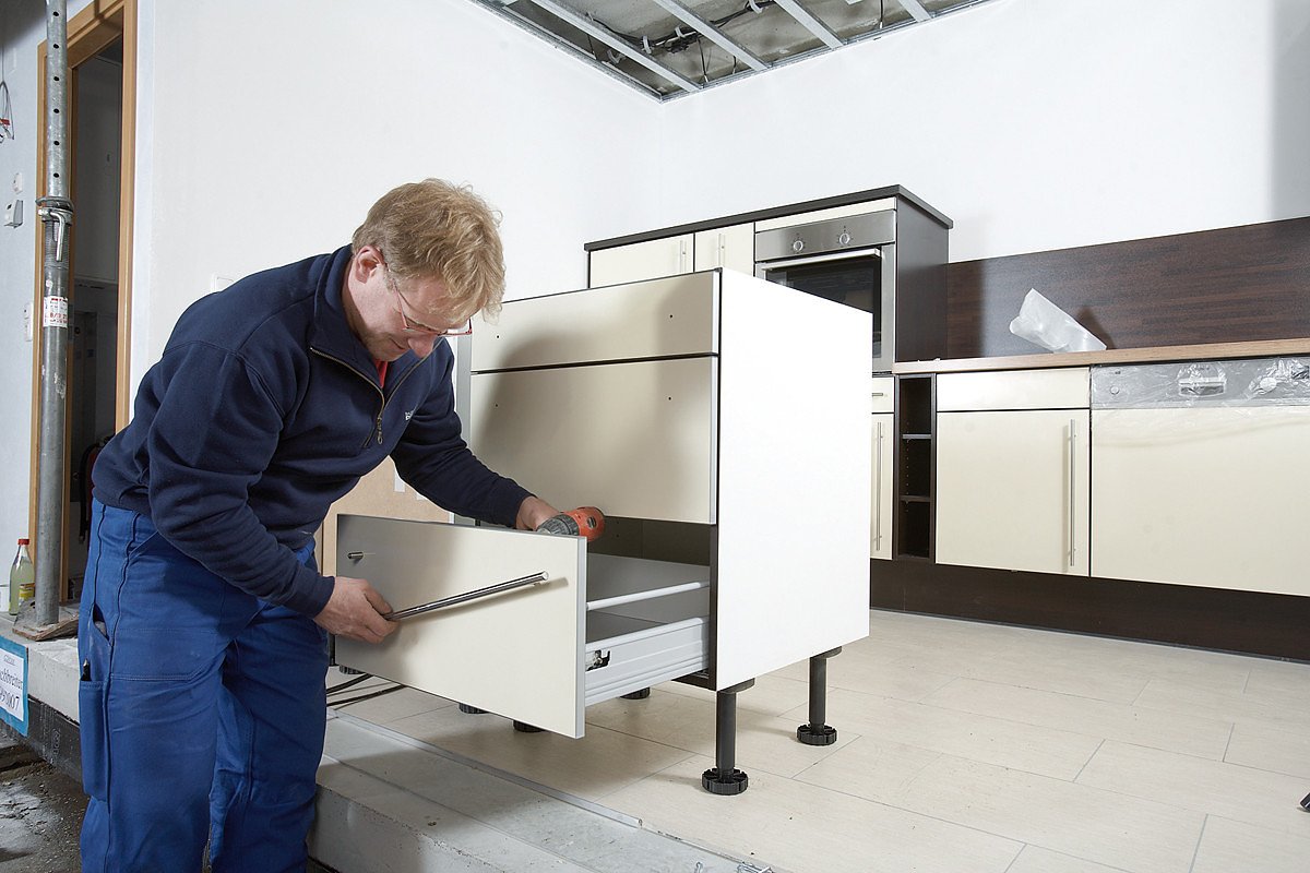 Küchenmontage in der Halle (Foto: dennert-massivhaus.de)