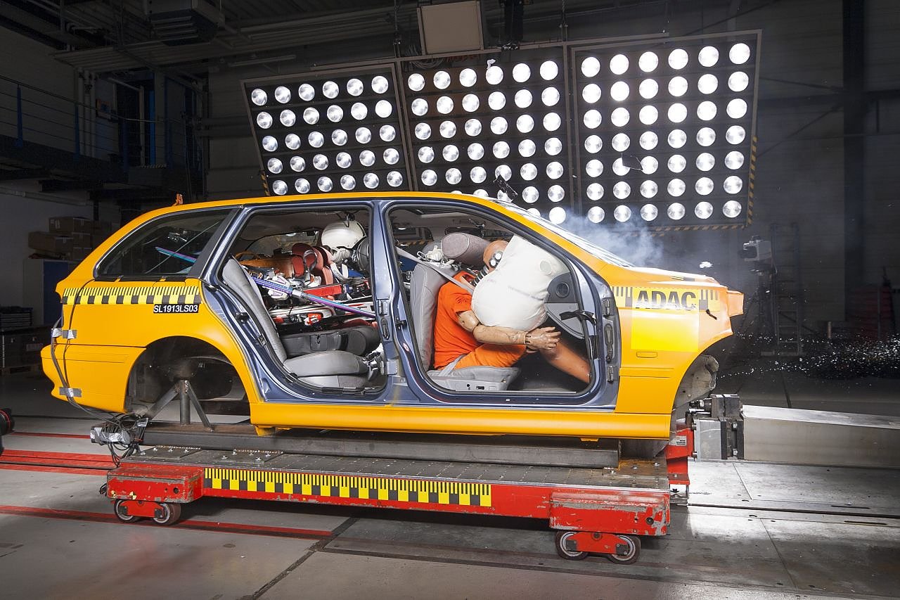 In zwei Crashtests zeigt der ADAC die folgenreichen Unterschiede zwischen ungesichertem und gesichertem Gepäck. Im schlechten Beispiel schießen bei einem Auffahrunfall mit 50 km/h alle losen Gepäckstücke nach vorne und treffen Fahrer und Beifahrer lebensgefährlich. Im guten Beispiel mit festgezurrten Skiern und Koffern sowie Skistiefeln, die hinter dem Vordersitz im Fußraum verstaut sind, bleibt das Gepäck, wo es hingehört. Niemand wäre durch die Ladung verletzt worden.