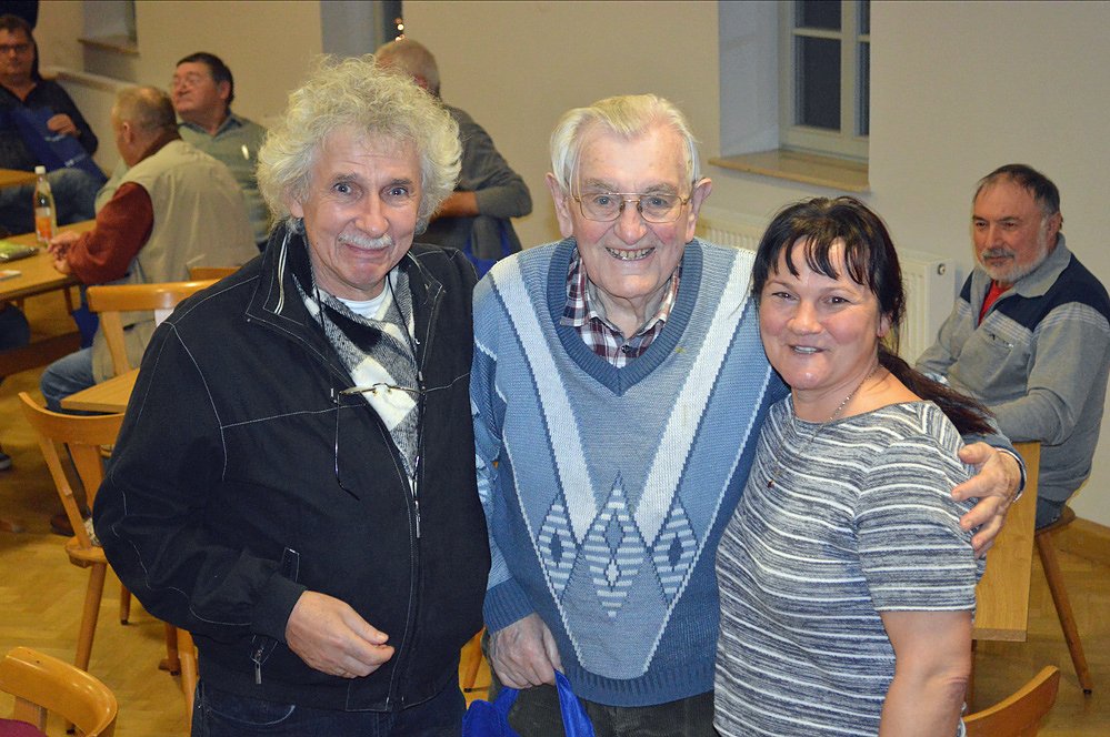 Skatrichter Wolfgang Tuhy, Gerhard Spengler (92 Jahre), Katy Schmidt (SV 58 Esperstedt)