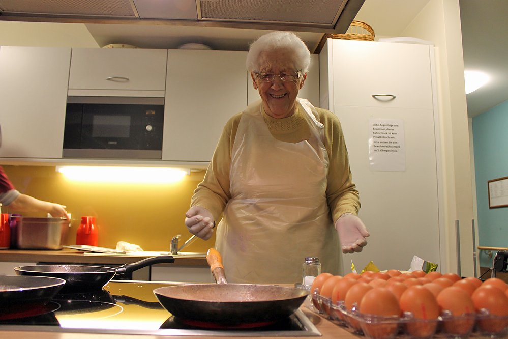 Die soziale Betreuung hat spontan am Abend zusammen mit den Bewohnern Spiegeleiern in den Teeküchen auf den Etagen zubereitet.