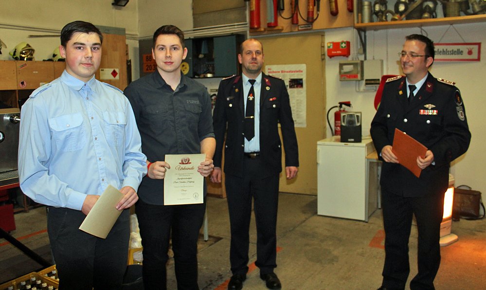 Und auch Beförderungen gab es, so wurde Florian Grambs zum Hauptfeuerwehrmann und Mike Grambs zum Oberbrandmeister befördert.