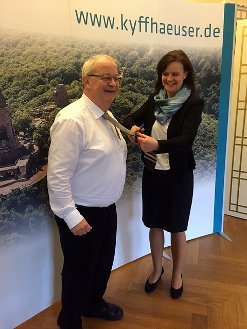 Autor: khhIm Landratsamt des hatte heute Verwaltungsleiter Dr. Heinz-Ulrich Thiele eindeutig die falsche Anzugsordnung gewählt. Landrätin Antje Hochwind bestrafte das sofort und Schnipp Schnapp hatte die Krawatte nur noch die halbe Länge!