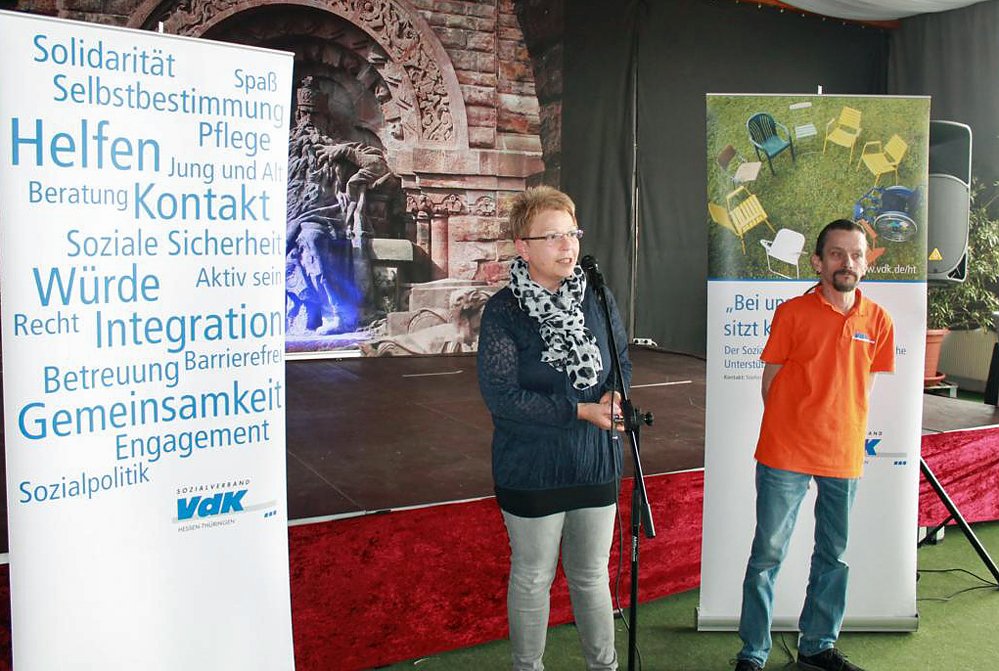 Frau Fischer ist schon 30 Jahre beim VdK und ist gern bei den Verbandsstufen unterwegs. Einerseits um den Kontakt zu pflegen und andererseits um zu sehen ob die Sachen, welche das Hauptamt zur Unterstützung vorschlägt auch für das Ehrenamt umsetzbar sind.