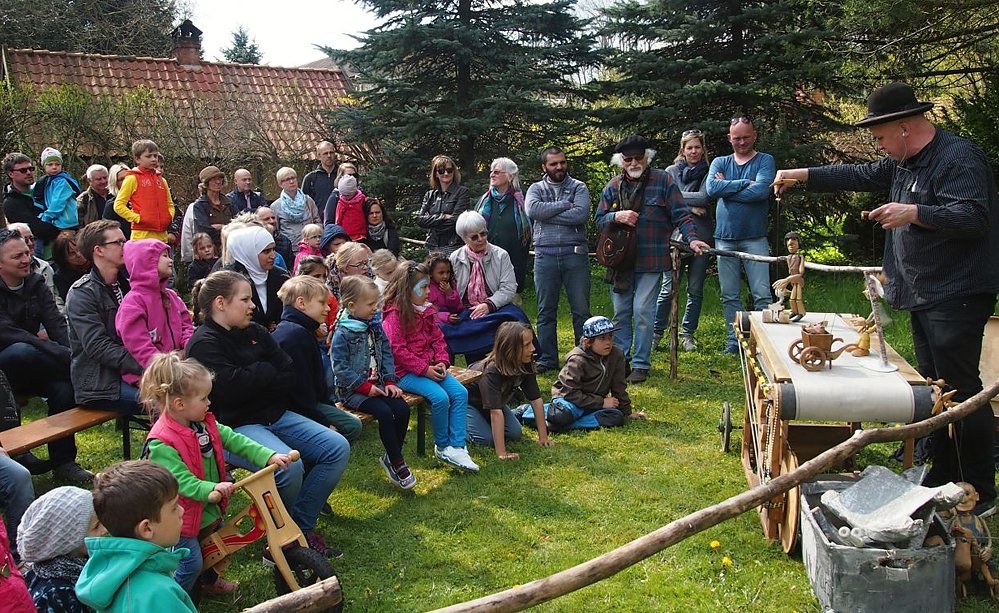 Außerdem gibt es Kaffee, selbst gebackenen Kuchen u.a. Wer sich betätigen möchte, hat Gelegenheit zu filzen, Kerzen zu ziehen oder ein Seil zu drehen. Oder er nutzt nur einfach die Gelegenheit, sich den Kräutergarten und den Ort anzuschauen.