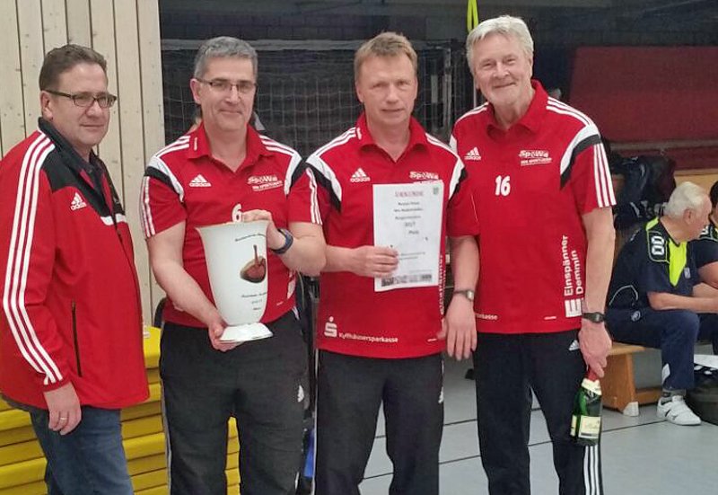 Autor: khhIm großen Teilnehmerfeld mit 11 Mannschaften aus dem ganzen Bundesgebiet konnten die Männer (Frank Etzel, Martin Kropka, Eckart Piontkowski, Karl-Heinz Schmid) einmal mehr überzeugen. Sie gewannen den Pokal mit 8 Siegen vor den Männern von Paderborn und Arnstadt.